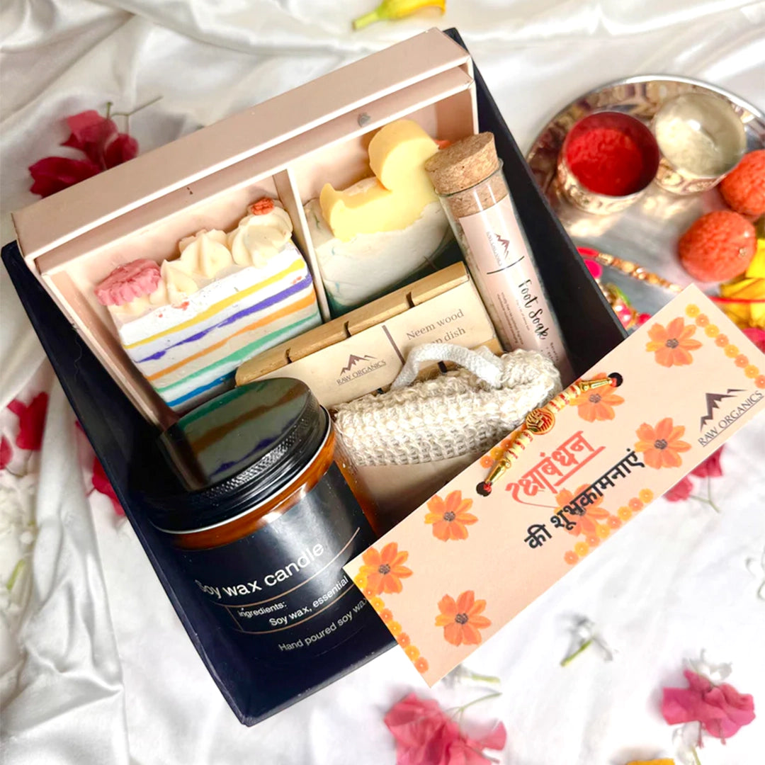 1. The Perfect Rakhi Surprise: A complete care package that expresses love, warmth, and well-being - all in one thoughtful gift box.