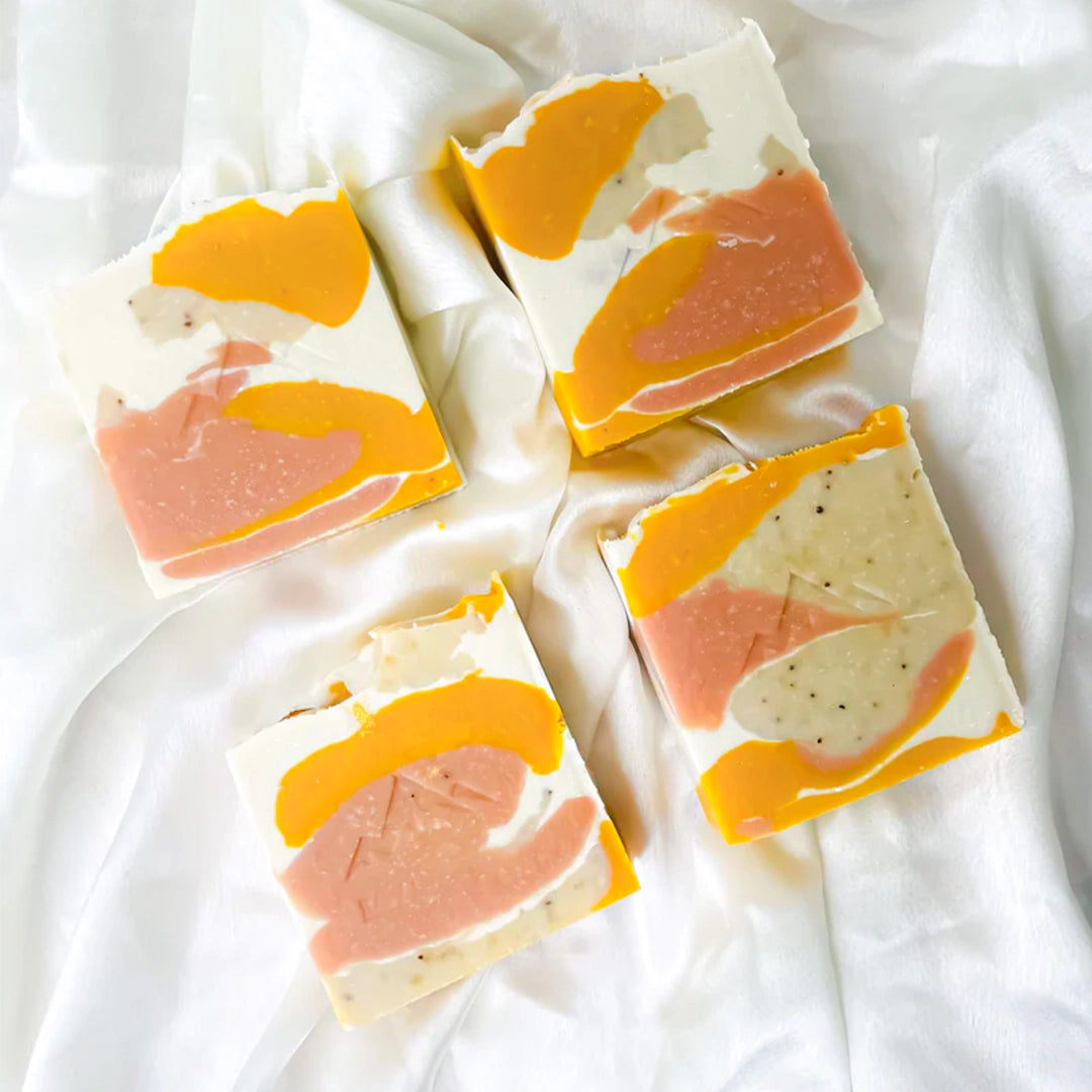 1. Brightens and Evens Skin Tone: Turmeric and saffron are known to naturally lighten blemishes, improve skin texture, and leave you glowing with each wash.